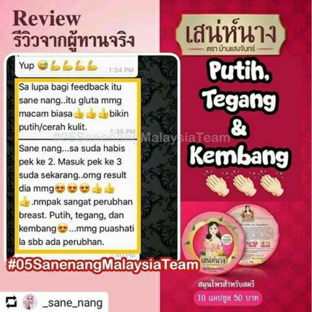 Sangat berkesan tak perlu tanya beratus kali ya. Sane nang biasa 10 caps dlm 1 peket bulat. Sane nang plus original 100% berkesan membesarkan payudara. Sane plus lebih khusus/kuat kpd miss v dan breast. Sane nang plus by yachan ( breast ) women only. Sane nang plus tak sama . Sane nang biasa seluruh badan miss v, breast , . Buy (≥ 12 items) rm14.99. Makan dlu baru tau compatible tak dengan badan.
